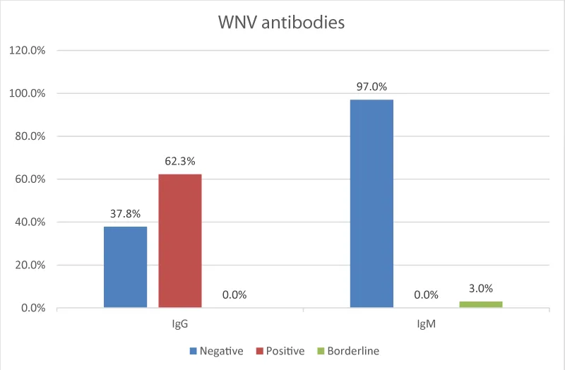 Figure 1: The characteristics and patterns of WNV IgG and IgM antibodies in the study population.